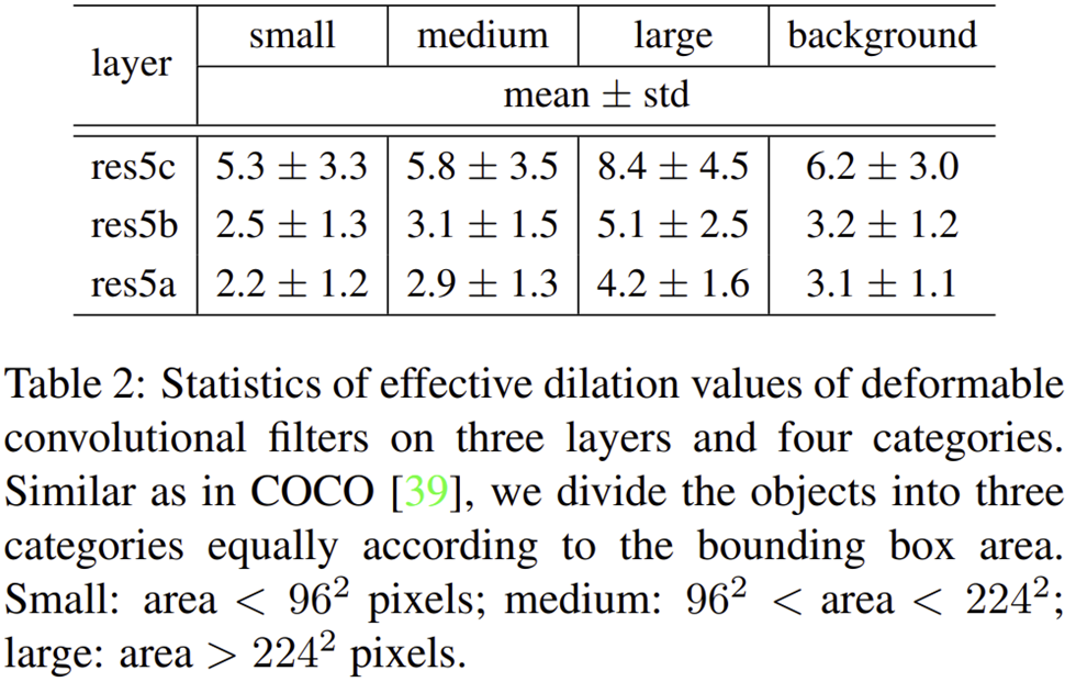 결과적으로 Deformable convolution은 객체 크기와 층의 깊이에 따라 동적으로 receptive field를 조정하여 효과적으로 객체 탐지를 수행한다는 것을 보여줍니다.