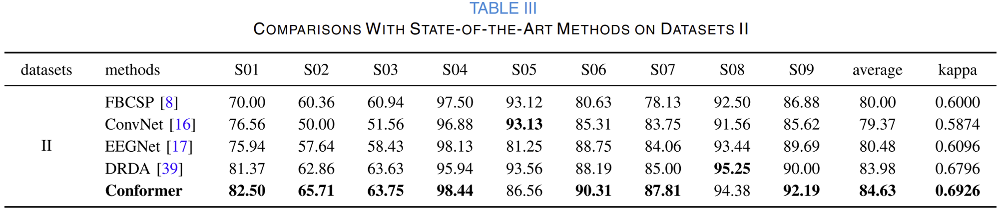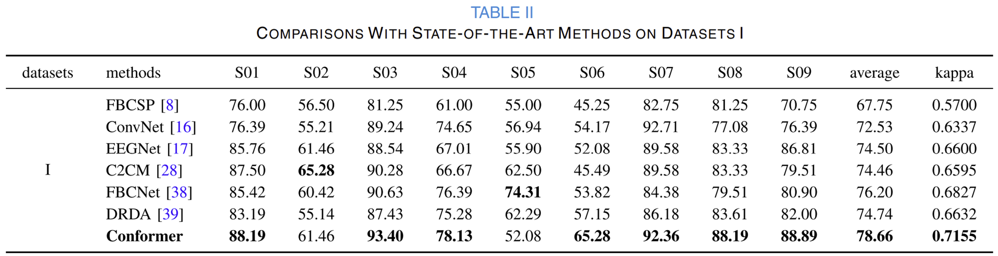 그래도 CSP (Common Spatial Pattern), Filter Bank, CWT (Continuous Wavelet Transform), EWT (Empirical Wavelet Transform) 등 다양한 전통적인 기법을 활용하여 추출하고 SVM (Support Vector Machine) 또는 MLP (Multi-layer Perceptron)과 같은 분류기에 입력하는 방식은 적극적으로 활용되어 왔습니다. 하지만, 이러한 방법들은 task-dependent한 feature를 얻기 때문에 prior 정보가 필요하죠. 이러한 문제를 해결하기 위해 CNN 기반으로 제안된 ConvNet, EEGNet 등이 제안되어 지역적인 세부정보를 잘 추출함에도 불구하고 전체 시간에 걸쳐 전역적인 문맥 정보를 추출하지 못한다는 문제점이 있었습니다.