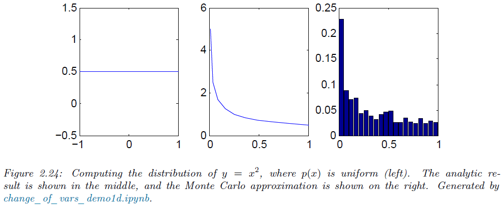 $$p_{y}(y) = p_{x}(g(y)) \left| \frac{d}{dy} g(y) \right|$$