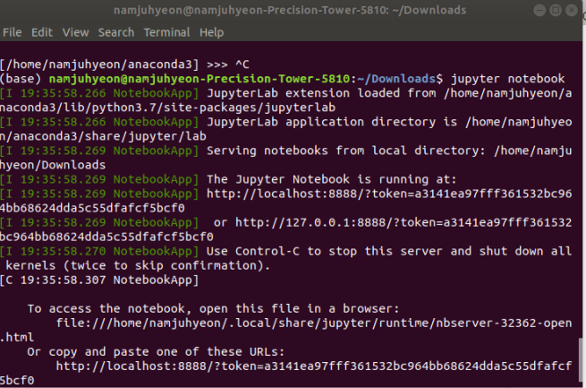아나콘다3가 설치되는 과정에서 자동으로 주피터 노트북을 설치해줄 것입니다. 이때 설치를 잘못하지 않은 이상(예를 들어서 root경로에 설치되었다거나...) 터미널을 열고 jupyter notebook을 입력하면 나오는 URL을 따라서 웹을 실행합니다. 이때!!! 만약 root 경로로 잡혔다면 sudo 명령어를 통해서 지우고 처음부터 다시 설치할 수도 있지만 jupyter notebook --allow-root 명령어를 통해서 root 경로에 설치되더라도 주피터 노트북이 실행될 수 있도록 만들어줍니다.
