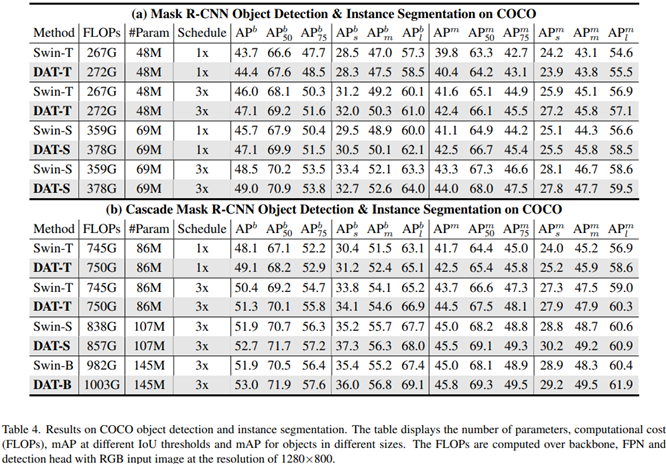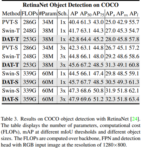 - Backbone 구조: 본 논문에서는 표준 MHSA 대신 Deformable Attention + MLP로 블록 구성하게 됩니다. 이를 통해 데이터 의존적(Adaptive) attention을 수행하여 중요한 위치에만 집중할 수 있게 만들었죠. 또한, 피라미드 구조로 다단계 다운샘플링으로 멀티 스케일 특성맵 생성하여 분류, 객체 검출, 시맨틱 분할 등 다양한 태스크에 활용 가능하게 만들었습니다.