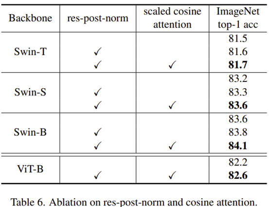 - 안정적 학습 → Residual Post-Norm과 Scaled Cosine Attention으로 대규모 모델에서도 학습 안정성 확보