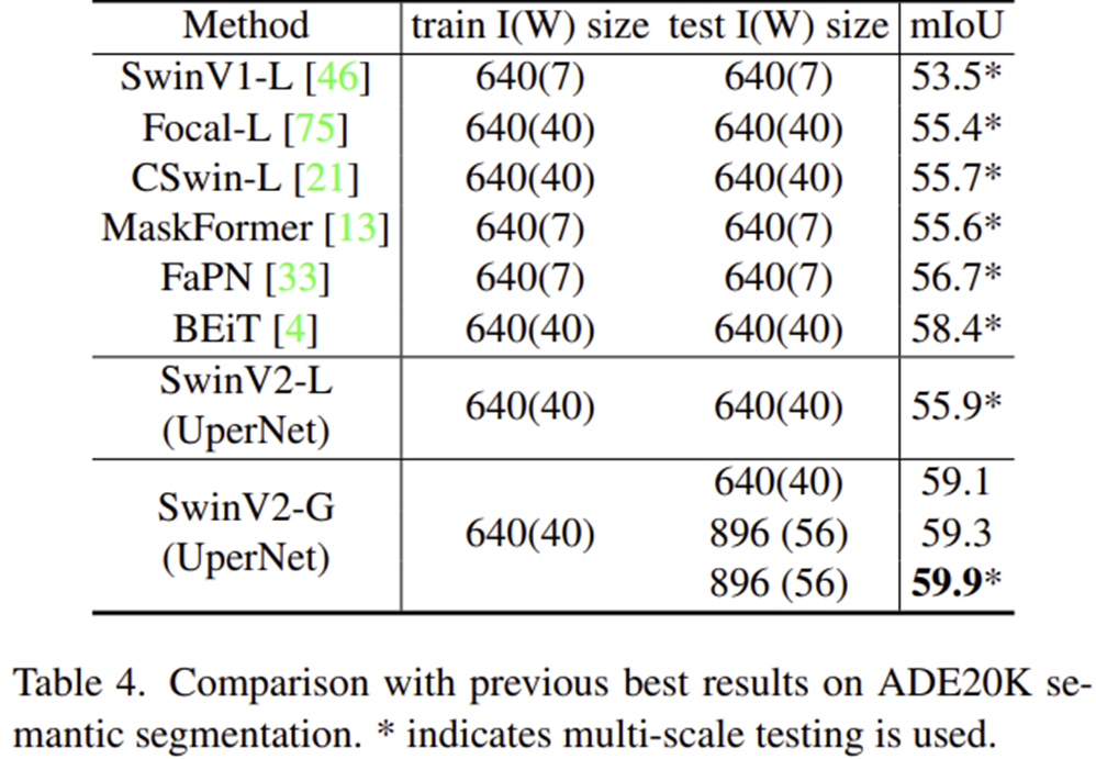 요약하면 Swin Transformer는 다양한 비전 분야에서 성공을 거두었지만 scaling up 과정에서 다음과 같은 문제점이 드러났습니다.