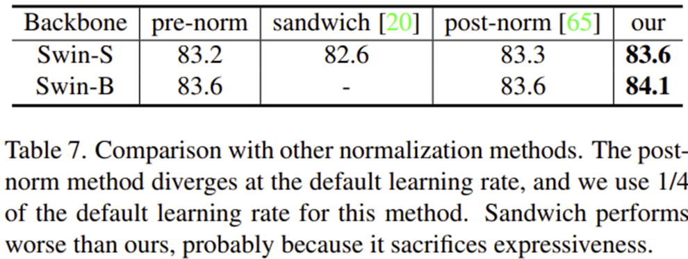 딥러닝에서 정규화(Normalization) 는 안정적인 학습을 위해 필수적인 요소입니다. Swin Transformer V1은 언어 모델(Transformer)과 ViT의 전통을 따라 pre-normalization 구조(LayerNorm을 블록 앞에 배치)를 그대로 채택했습니다. 하지만 이 방식은 대규모 모델로 확장할 때, 층이 깊어질수록 residual 값이 누적되 activation 값이 과도하게 커지는 문제를 야기합니다. 즉, 작은 모델에서는 무난히 동작했지만, 큰 모델에서는 학습 불안정성의 원인이 되었습니다.