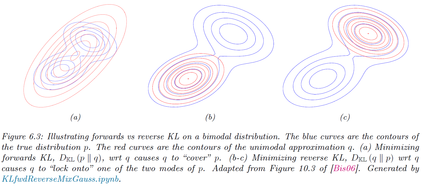 위 그림은 실제로 forward KL과 reverse KL의 차이를 보여주고 있습니다.