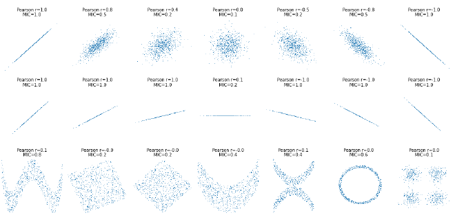 또한 MIC는 상관계수처럼 선형 관계만 찾는 데 제한되지 않습니다. 그래서 MIC는 “‘21세기를 위한 상관계수’(a correlation for the 21st century)”라고 불리기도 했습니다.